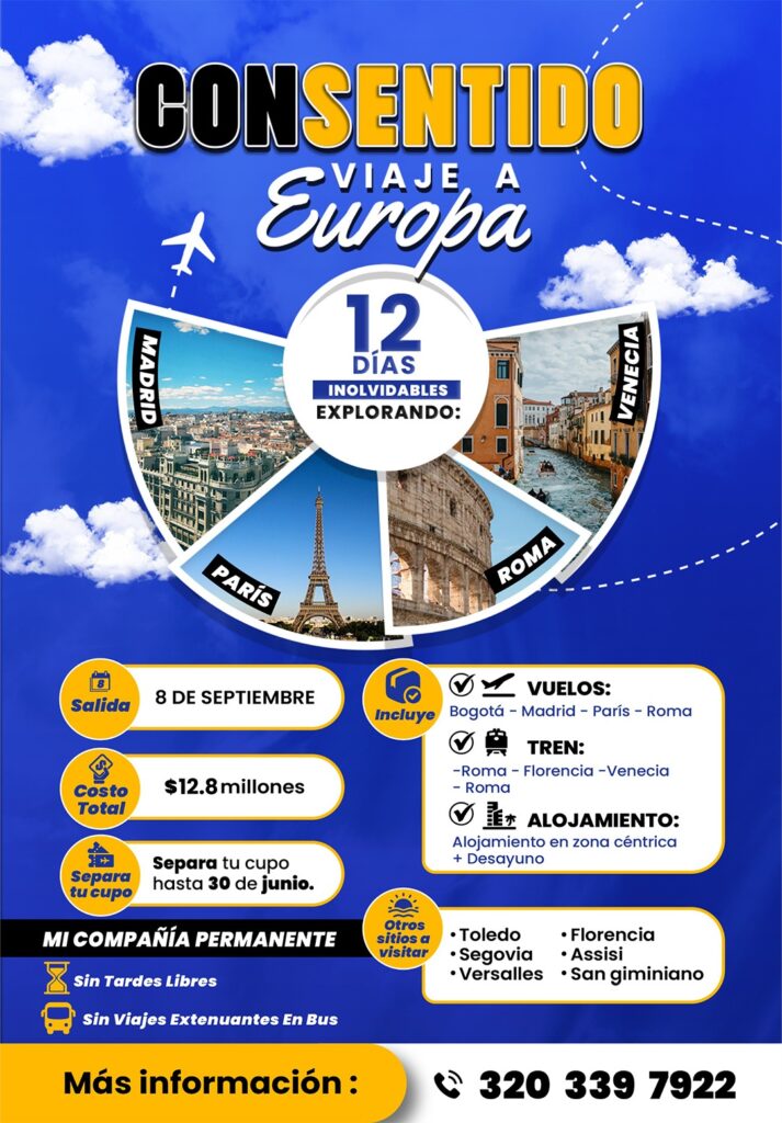 Expandimos tus horizontes: contamos con salidas programadas a destinos emblemáticos de Europa como España, Francia, Italia, Alemania y Países Bajos. Ofrecemos paquetes completos con vuelos, hoteles, recorridos guiados y asesoría personalizada en cada etapa del viaje.